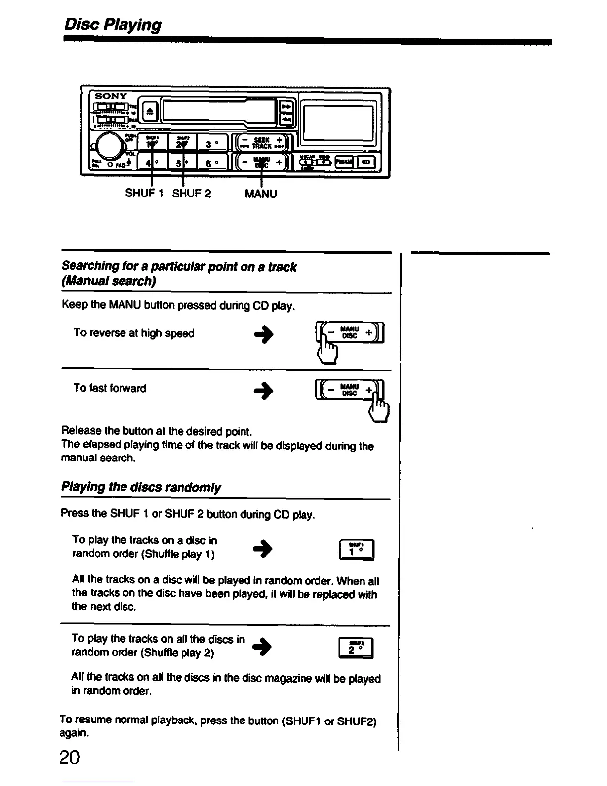 Sony CDX-A55 - Searching for a Particular Point on a Track; Playing the Discs Randomly