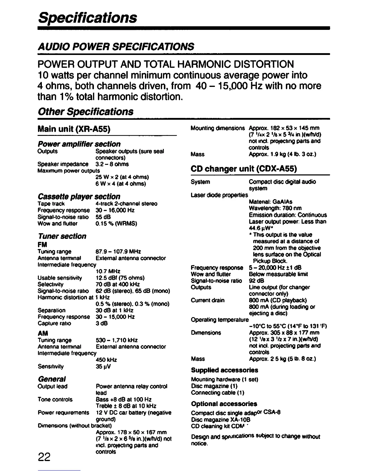 Sony CDX-A55 - Specifications