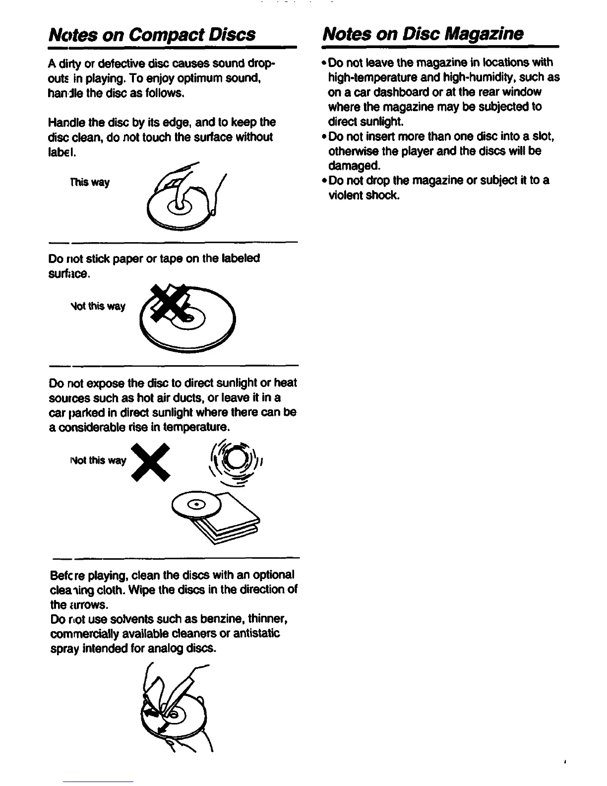Sony CDX-A55 - Notes on Compact Discs; Notes on Disc Magazine