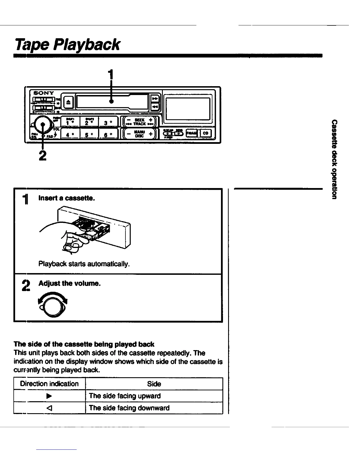 Sony CDX-A55 - Tape Playback; The Side of the Cassette Being Played Back