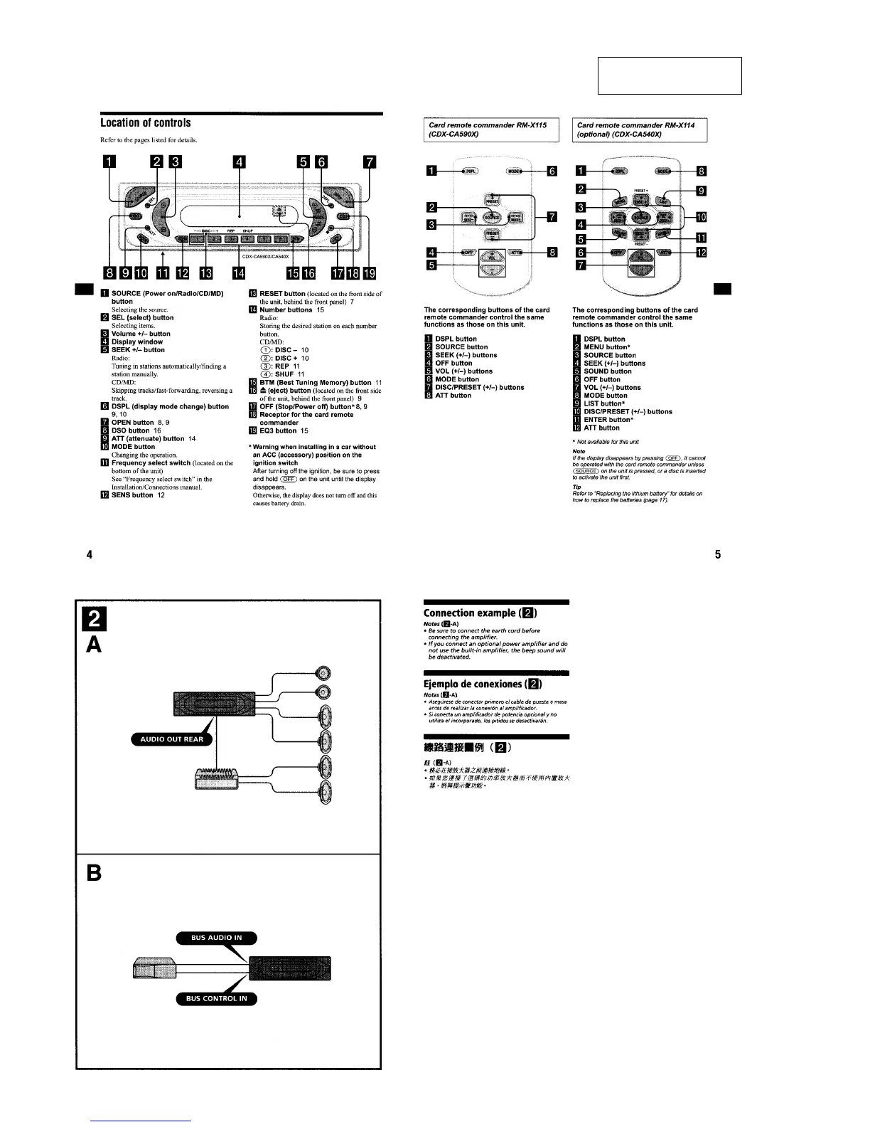Sony CDX-CA540X - 1 General; Location of Controls; Connections