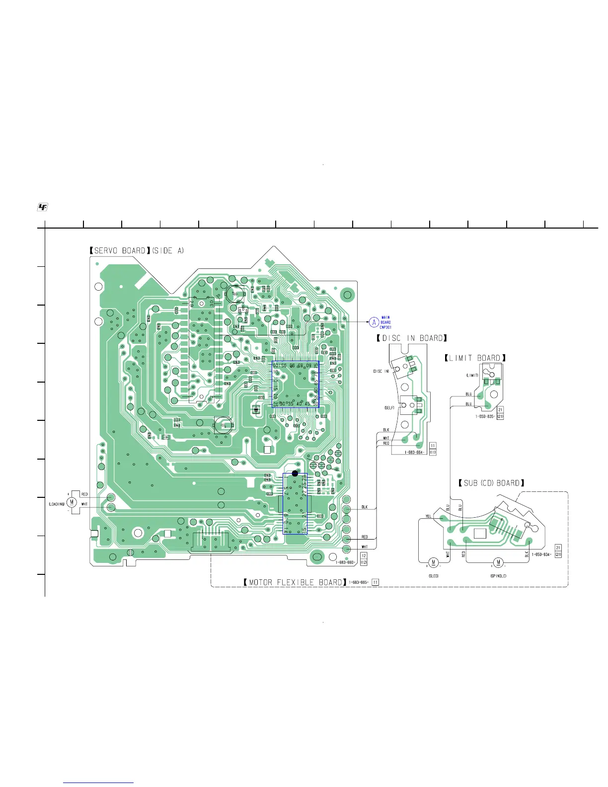Sony CDX-CA710X - Printed Wiring Board Layouts; Servo, Disc In, Limit, Sub, and Motor Boards PWB