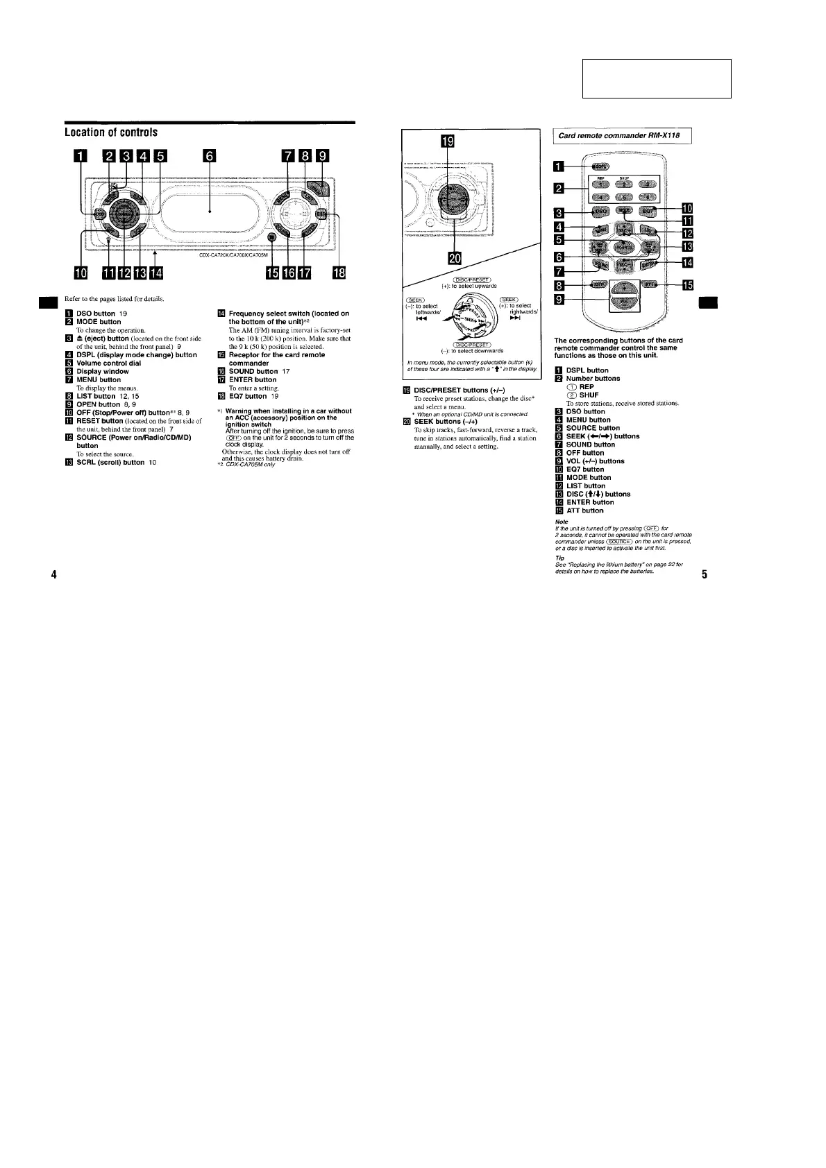 Sony CDX-CA720X - Location of Controls; Unit Controls Overview
