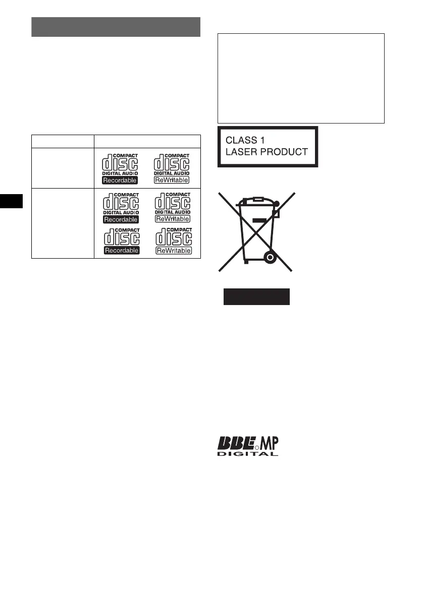 ), CD-Rs/CD-RWs (MP3-Dateien,
