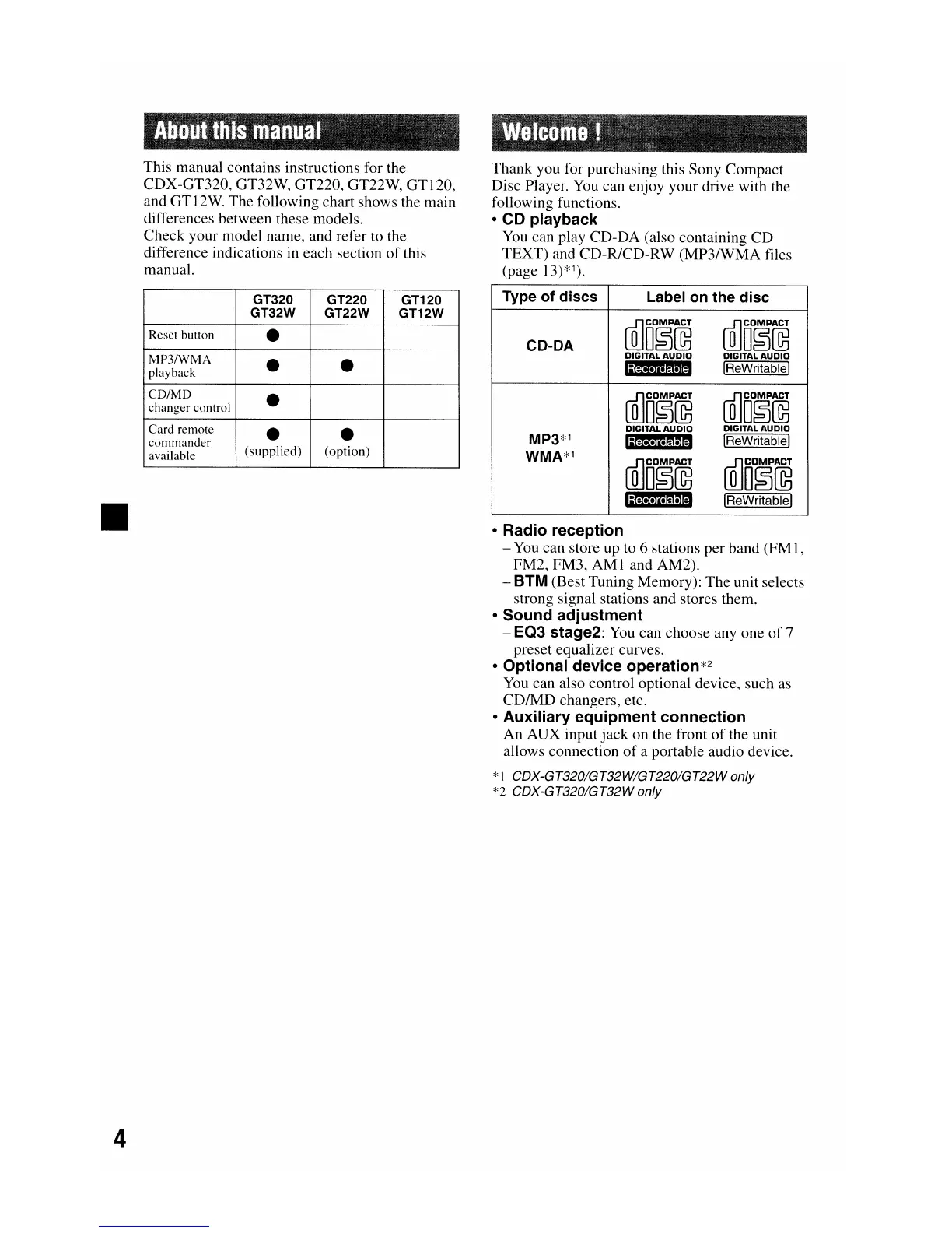 CDX-GT320, GT32W, GT220, GT22W, GT120,