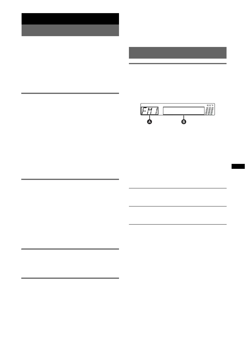 Sony CDX-GT500U - Radio; Storing and Receiving Stations; Storing Automatically - BTM; Storing Manually