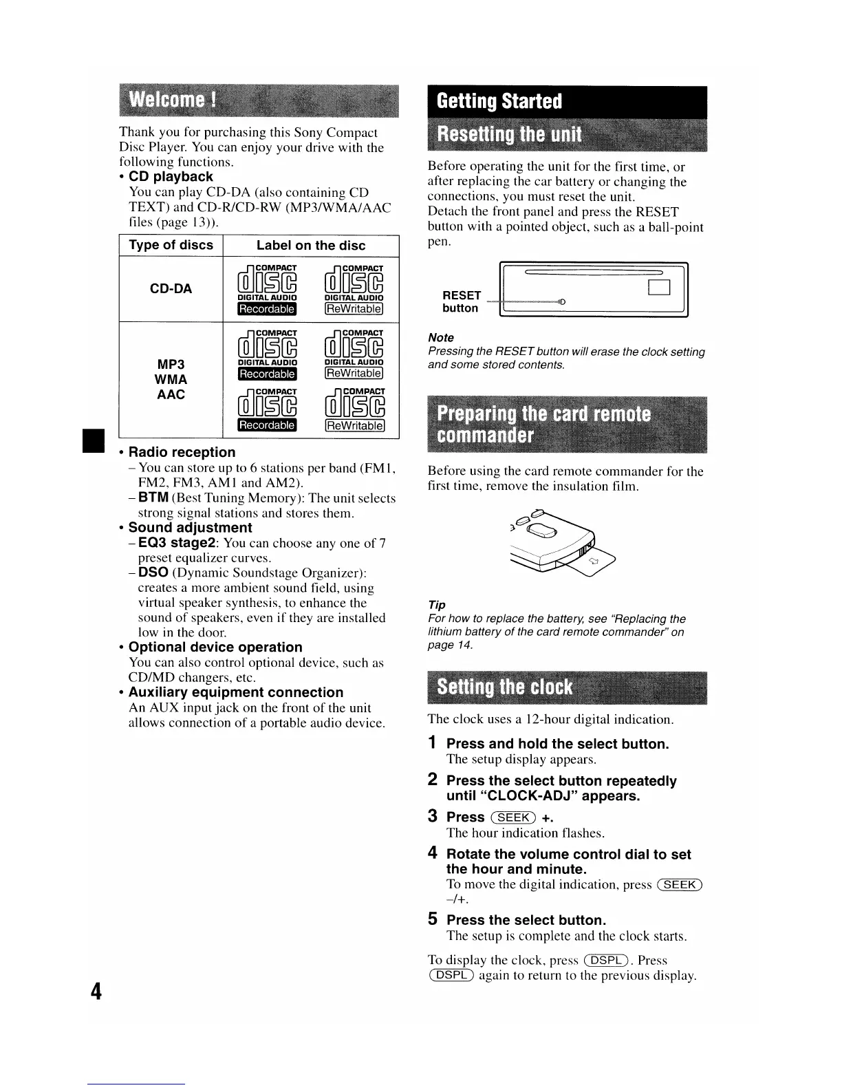 Before using the card remote commander for the