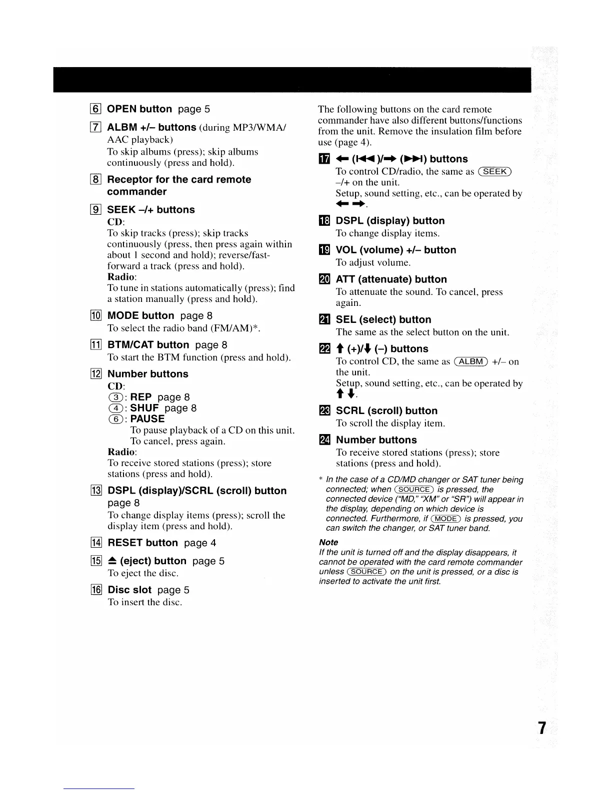 following buttons on the card remote