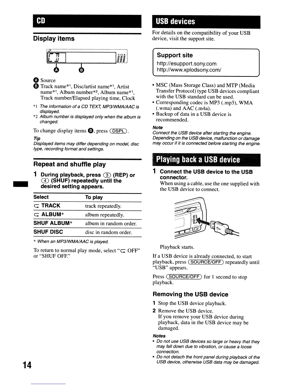 1 Stop the USB device playback.