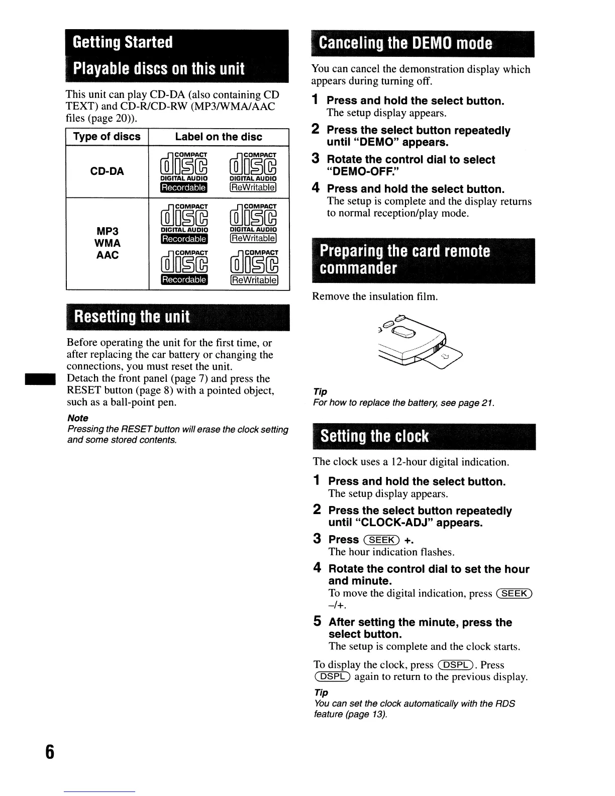 RESET button (page 8) with a pointed object,