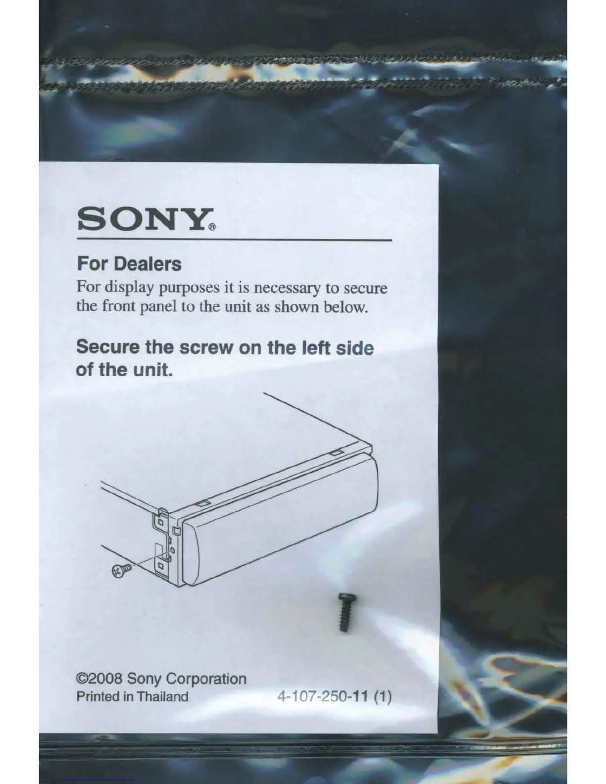 Sony CDX-GT565UP - Dealer Information; Front Panel Display Security