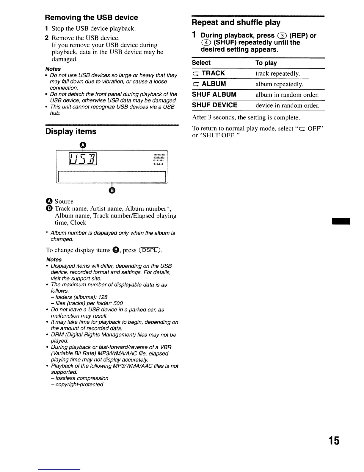 1 Stop the USB device playback.