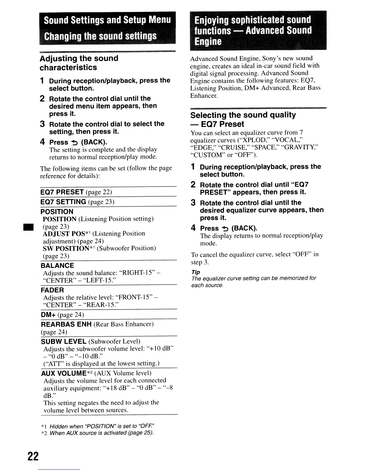 *2 When AUX source is activated (page 25).