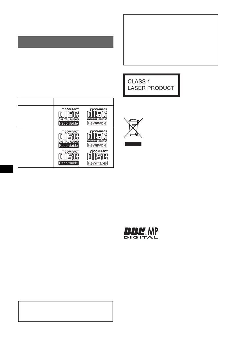 anche CD TEXT*), CD-R/CD-RW (file MP3/