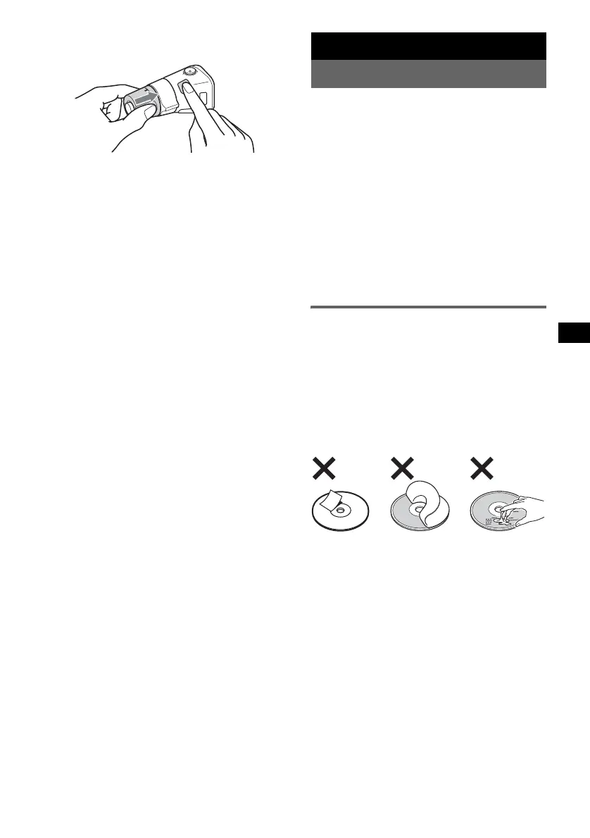 • Do not attach labels, or use discs with sticky ink/