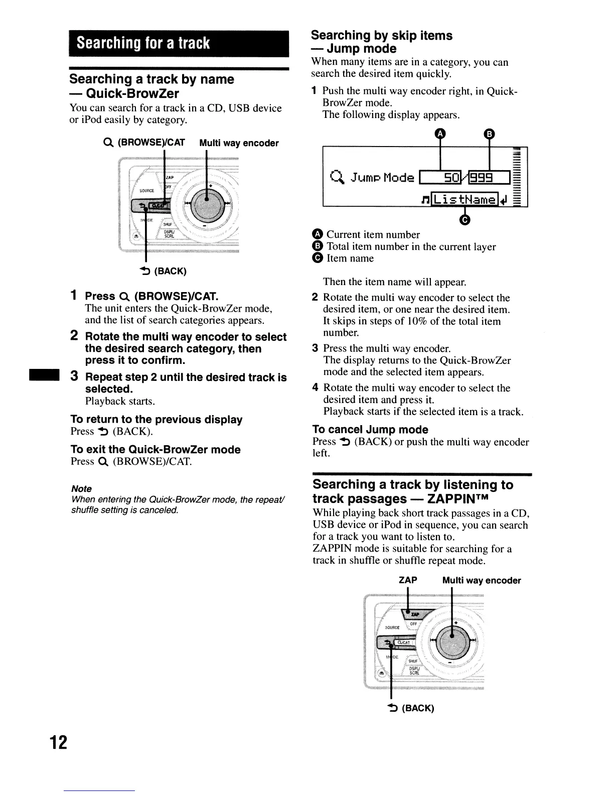 When entering the Quick-BrowZer mode, the repeat!