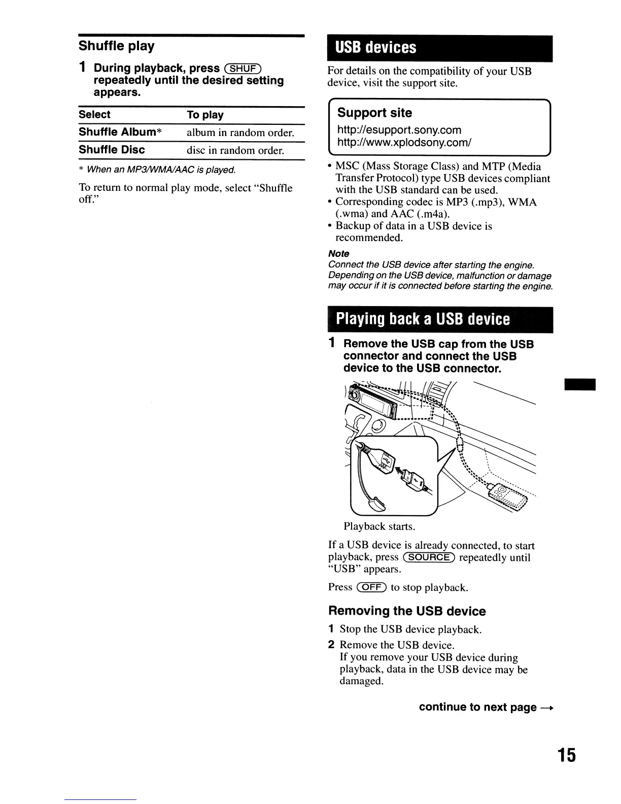 Connect the USB device after starting the engine.
