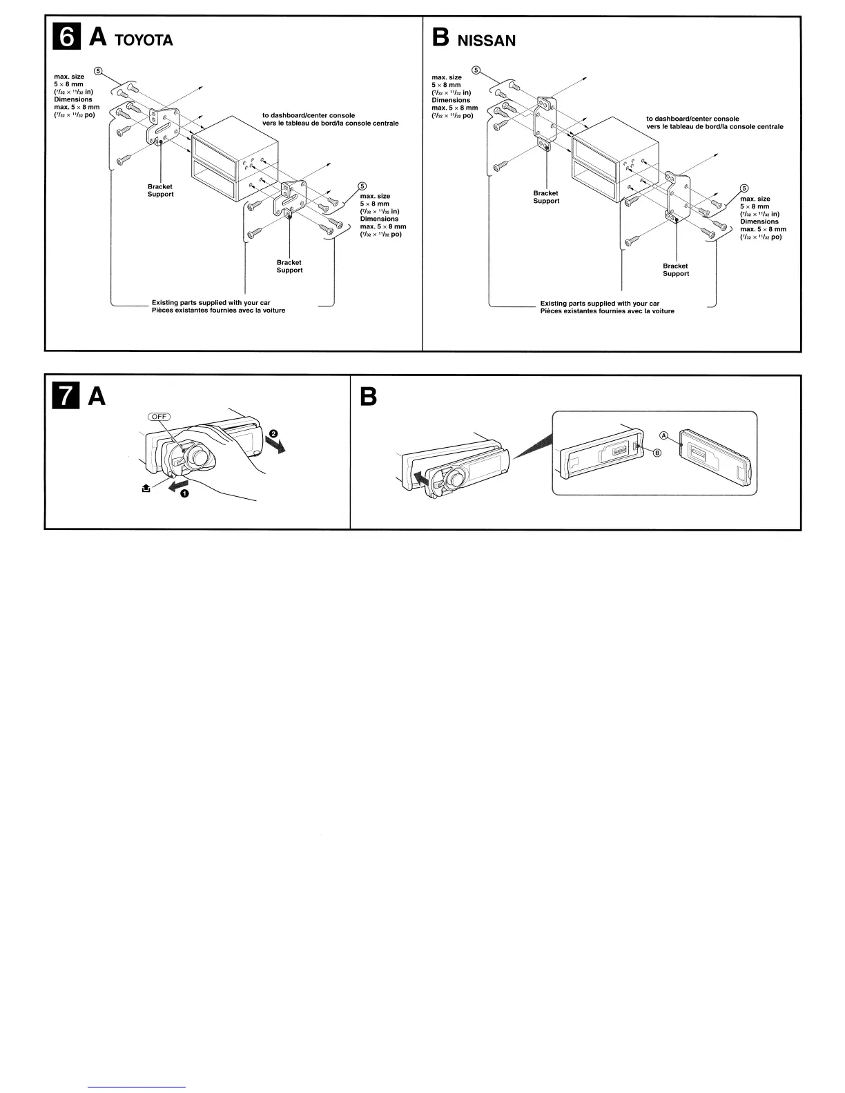 Sony CDX-GT930UI - Mounting Examples: Toyota and Nissan; Front Panel Attachment Details