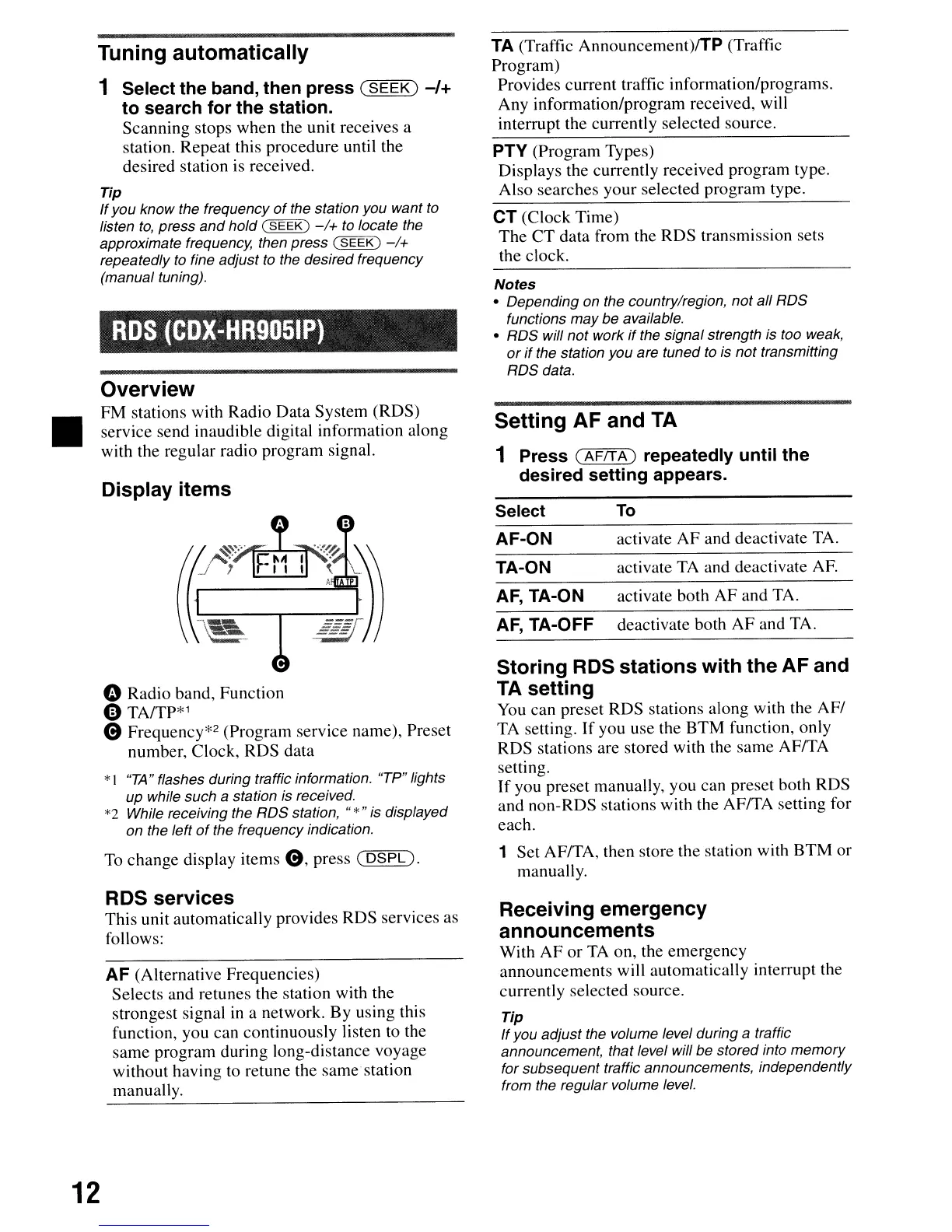 *1 "TA" flashes during traffic information. ''TP'' lights