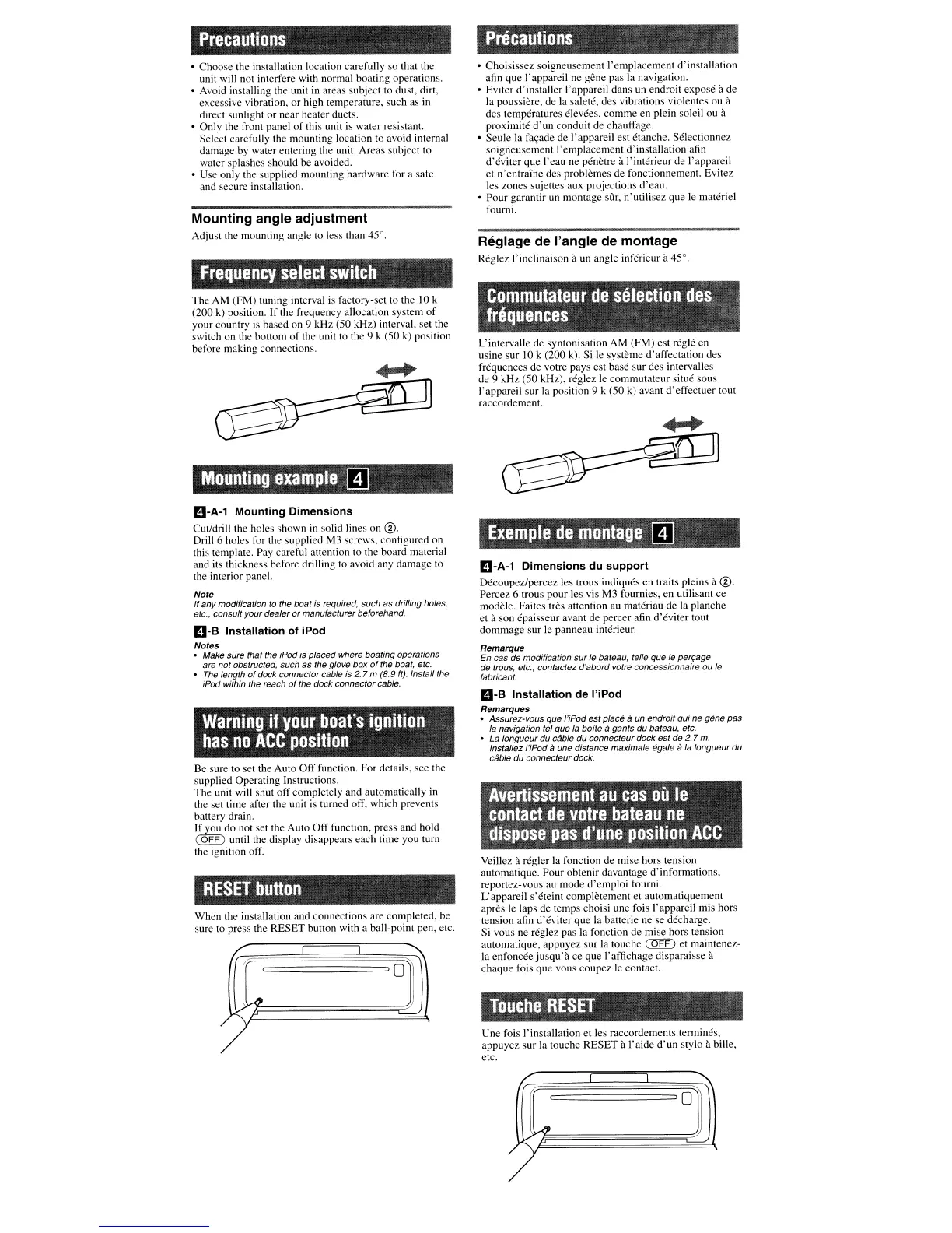 • Seule la far;ade de l'appareil est etanche. Selectionnez