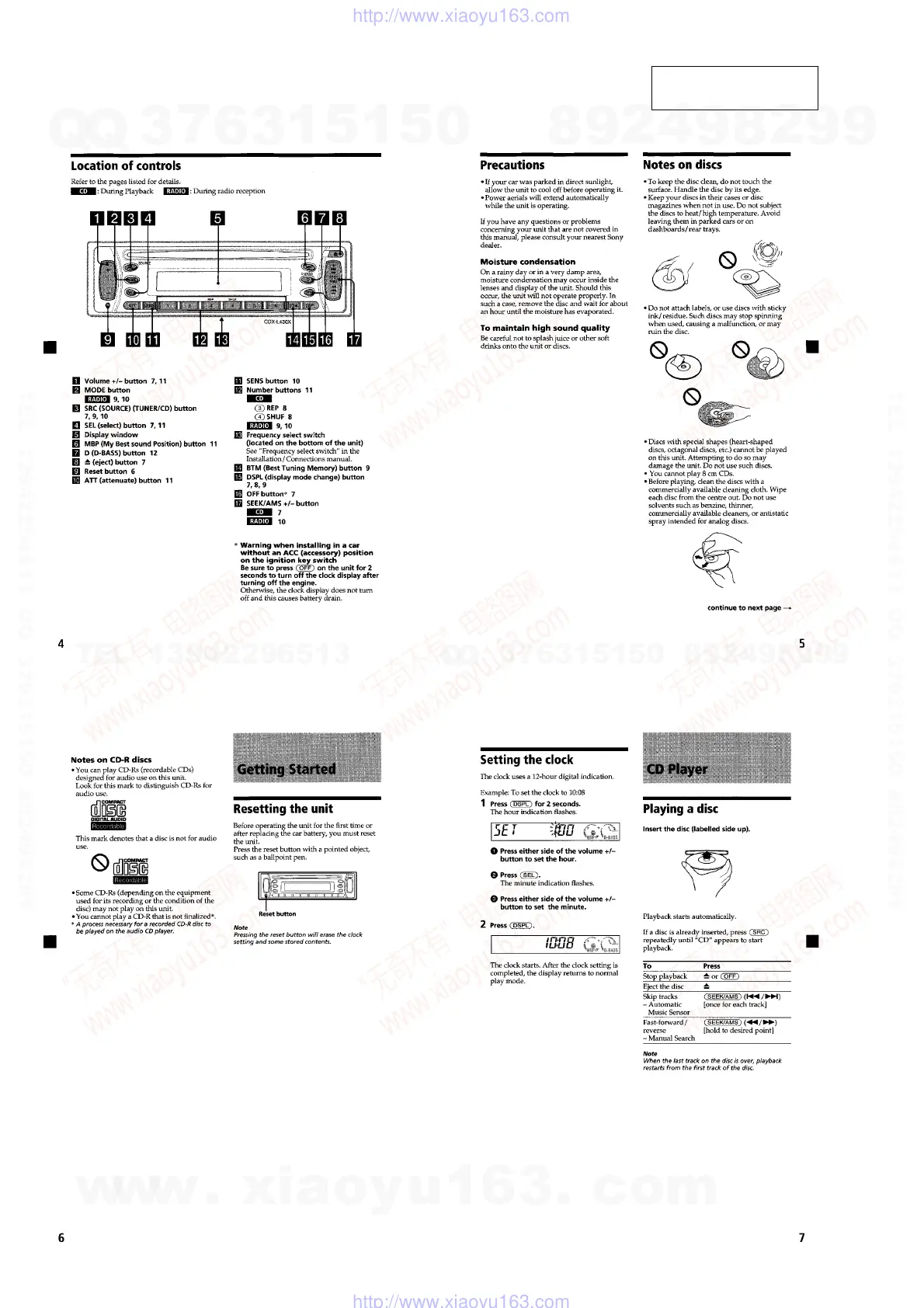 Sony CDX-L250 - Getting Started and Basic Operation; Control Layout and Initial Setup; Disc Handling and Operational Precautions