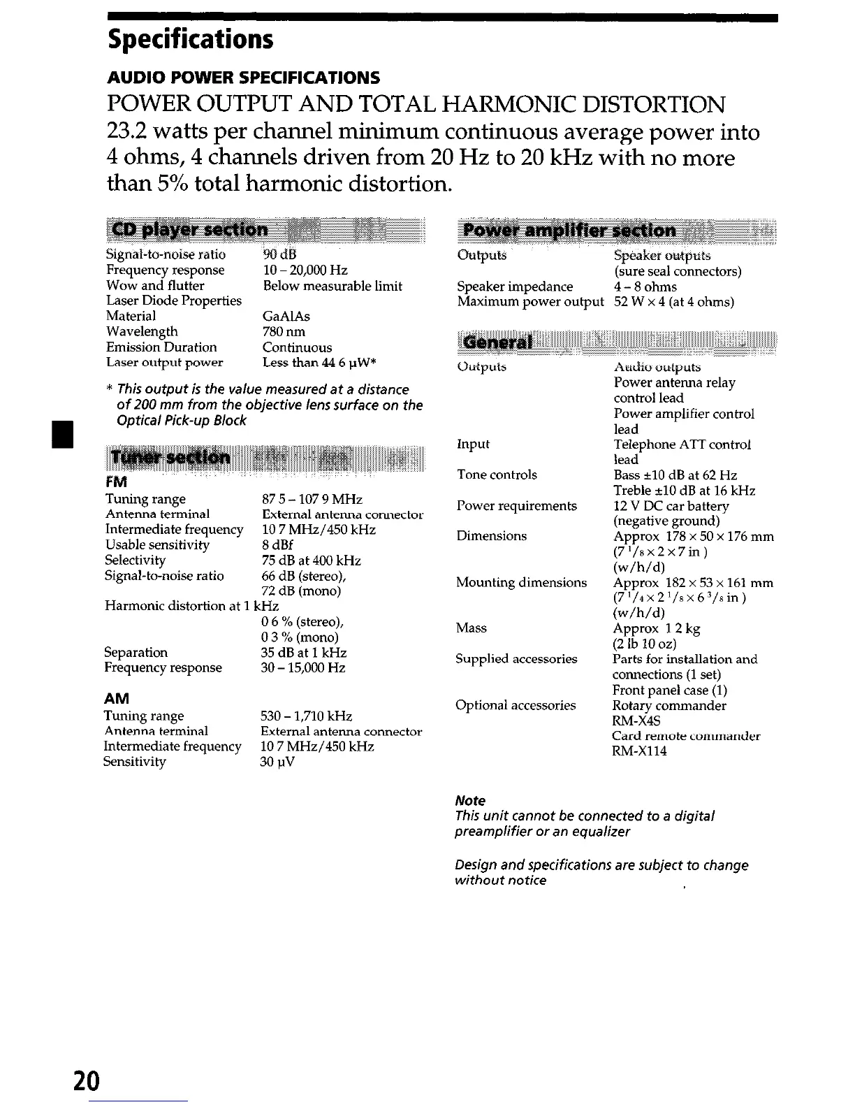 4 ohms, 4 channels driven from 20 Hz to 20 kHz with no more