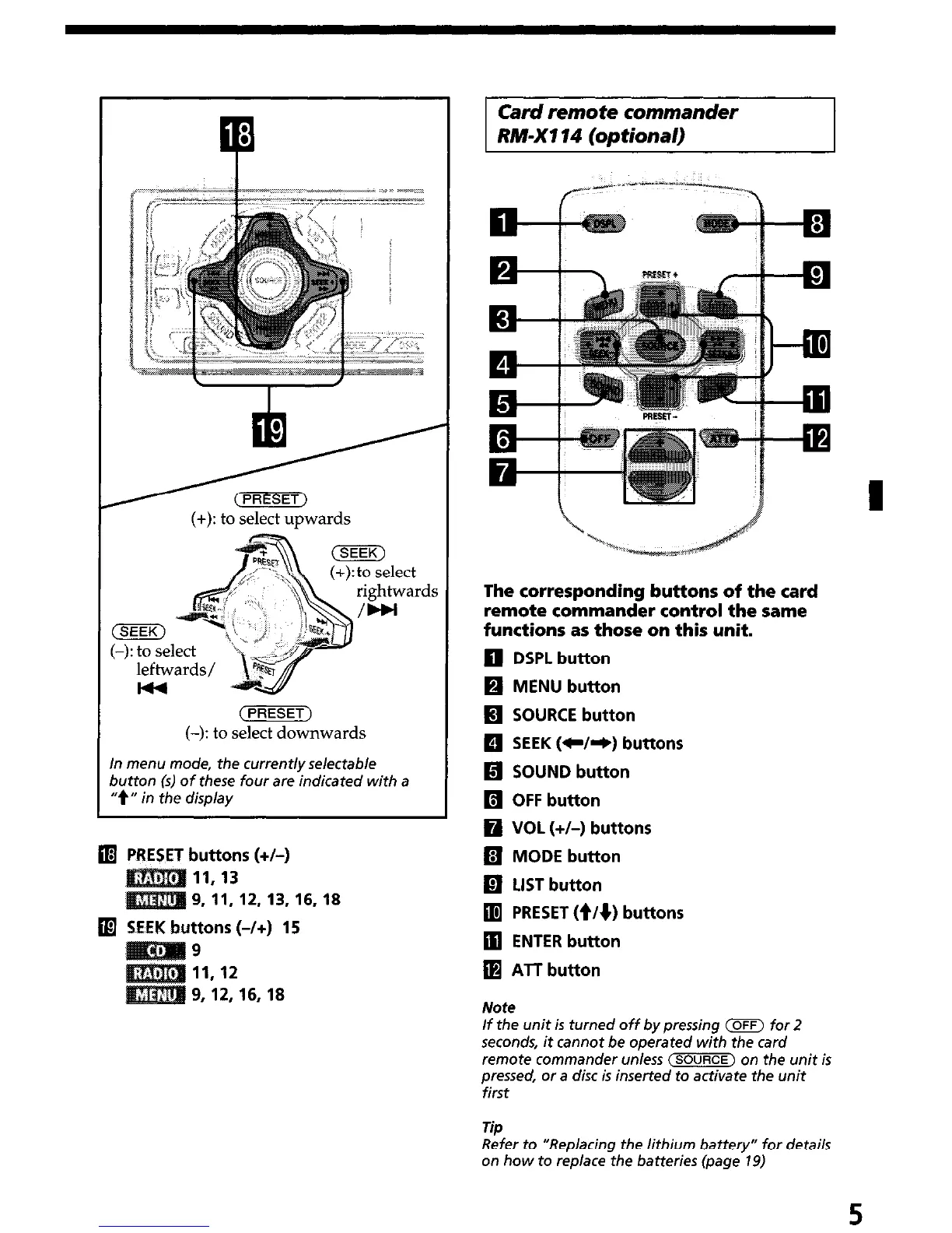 SEEK buttons (-/+) 15