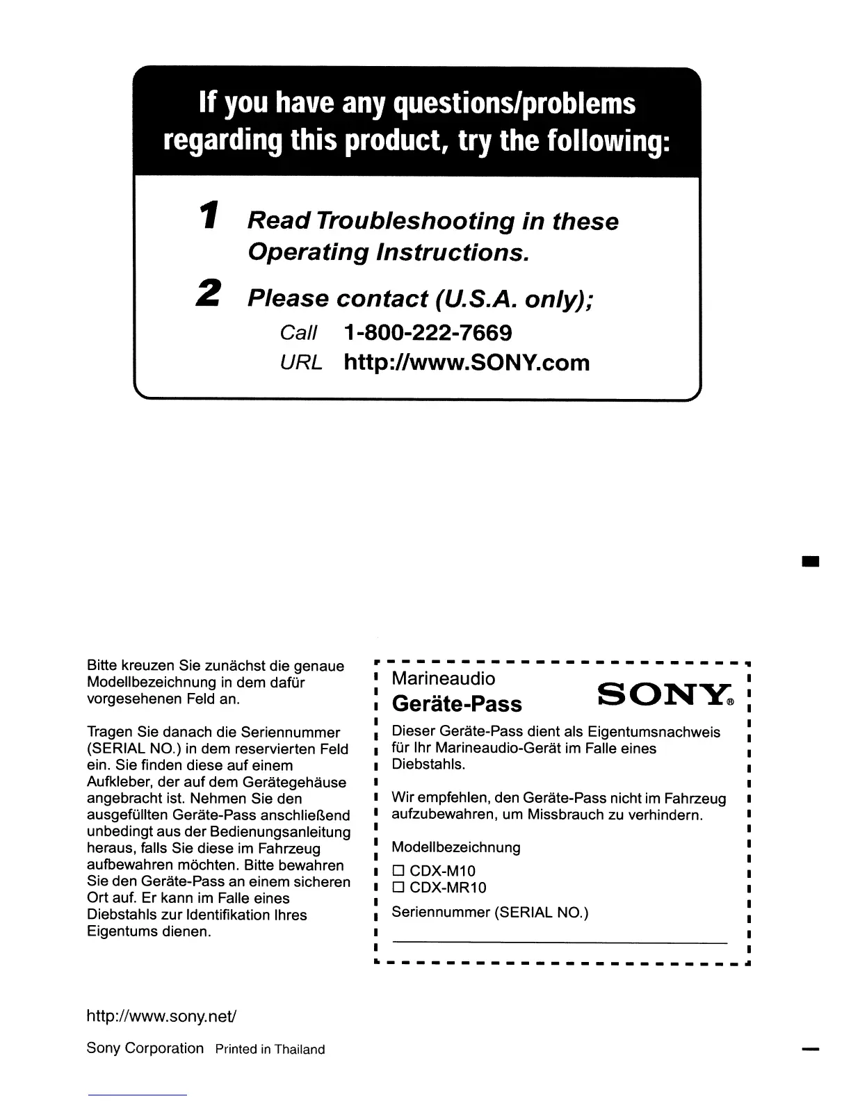 Other manuals for Sony CDX-M10