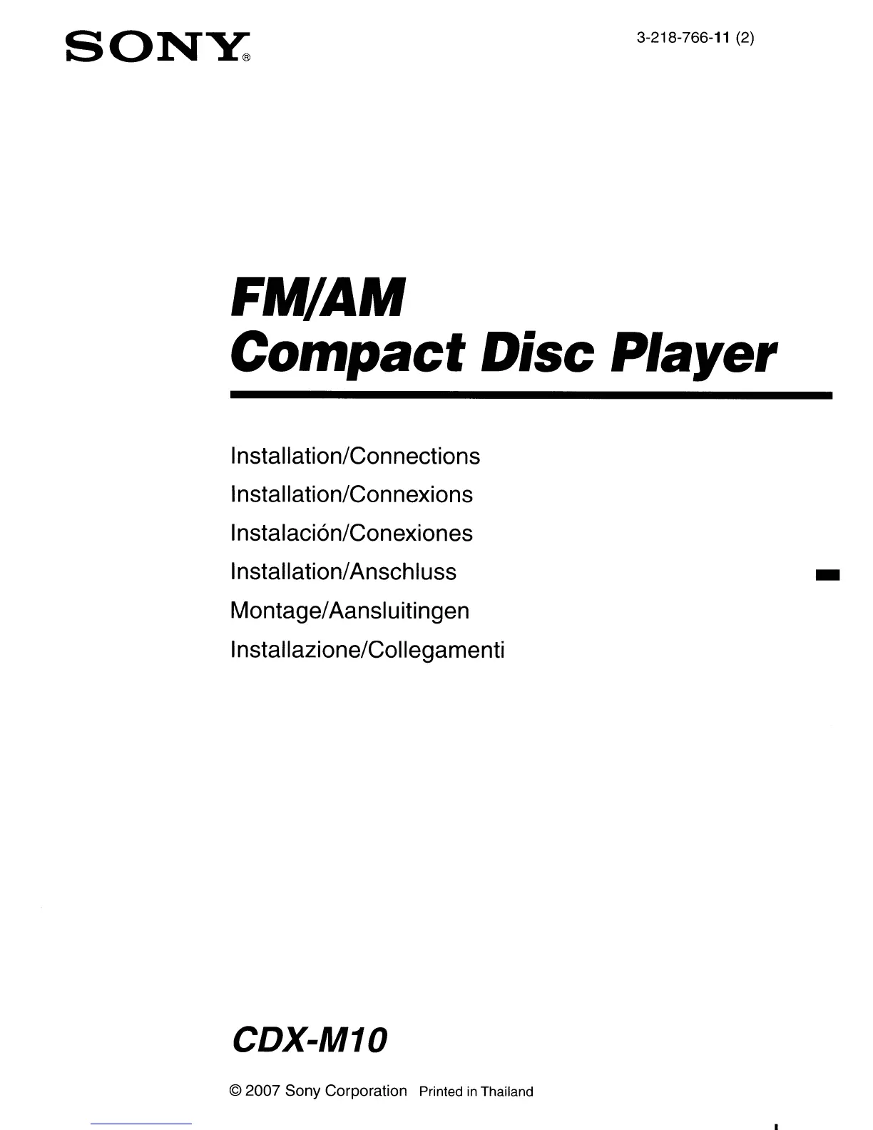 Sony CDX-M10 - Installation;Connections CDX-M10