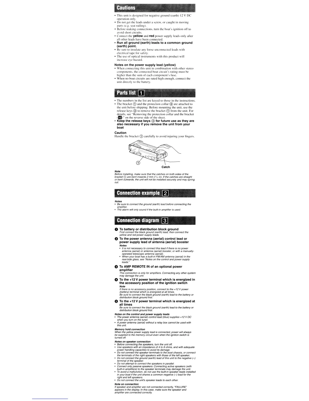 Sony CDX-M10 - Installation and Wiring; Installation Precautions and Diagrams