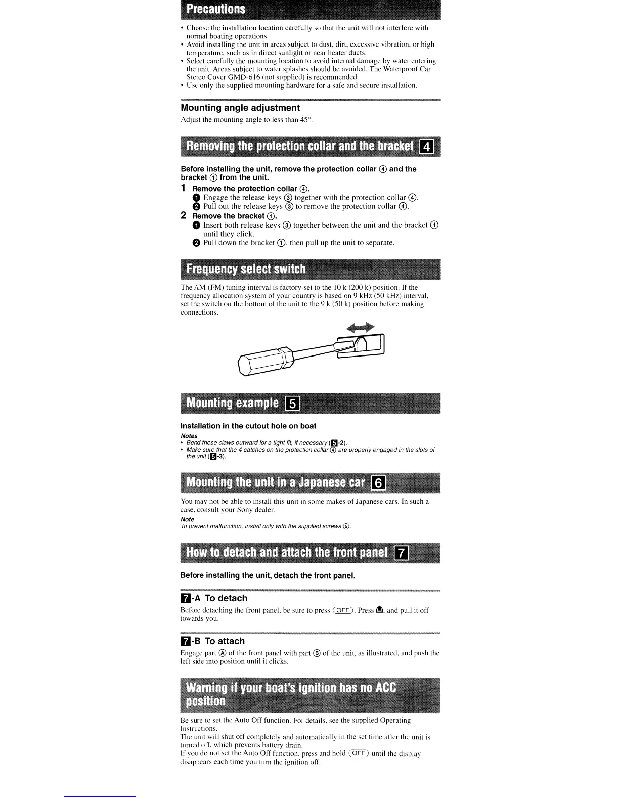Sony CDX-M10 - Unit Installation and Handling; Mounting Adjustments and Panel Detachment