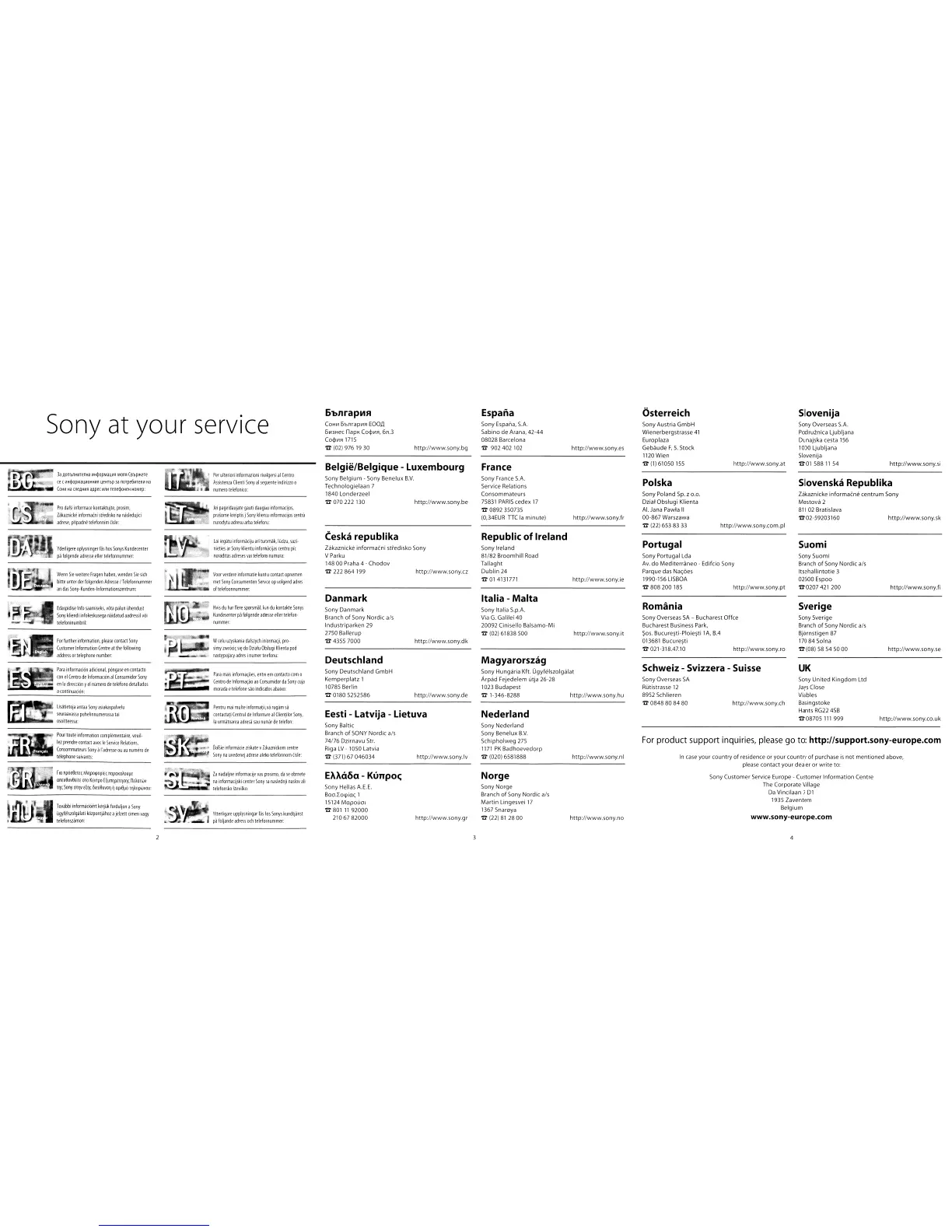 Sony CDX-M10 - Customer Service Information; Contact Details by Country