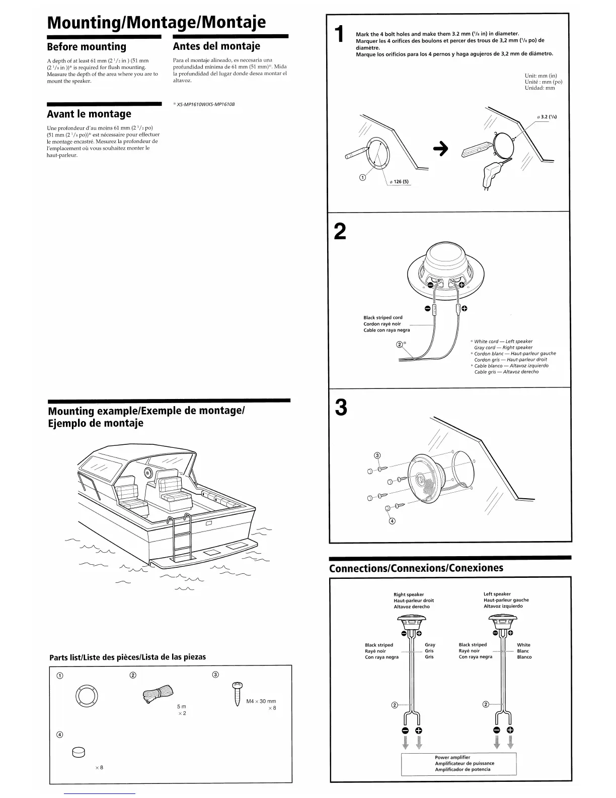 Sony CDX-M10 - Speaker Mounting and Connections; Mounting Procedure and Parts List