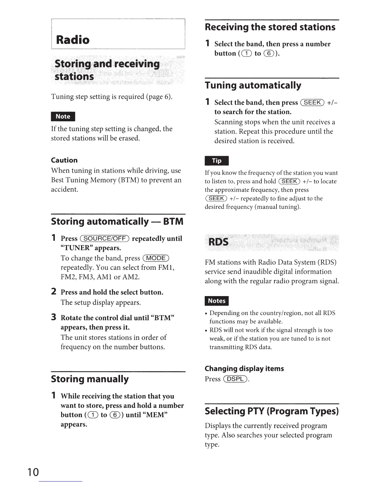 tuning in stations while driving, use