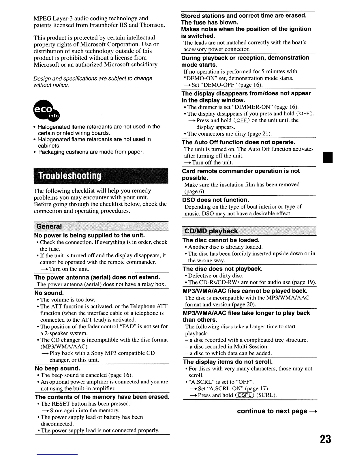 - Play back with a Sony MP3 compatible CD