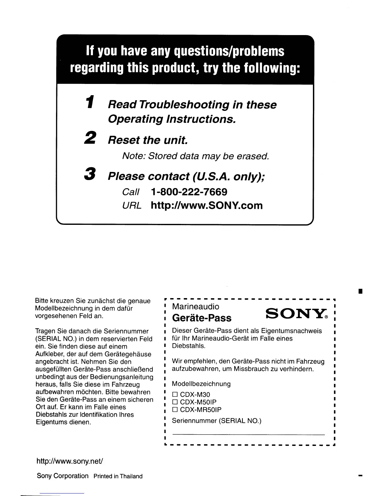 3 Please contact (U.S.A. only);