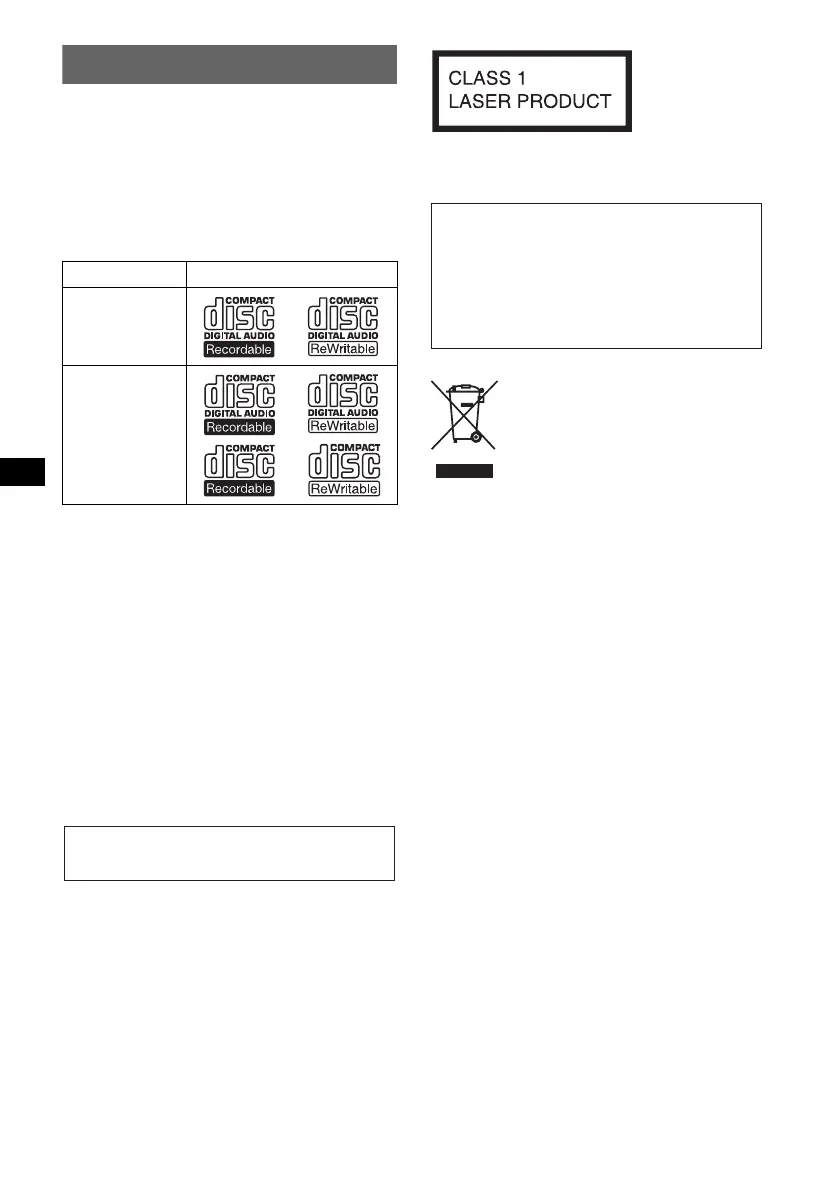 Type of discs Label on the disc