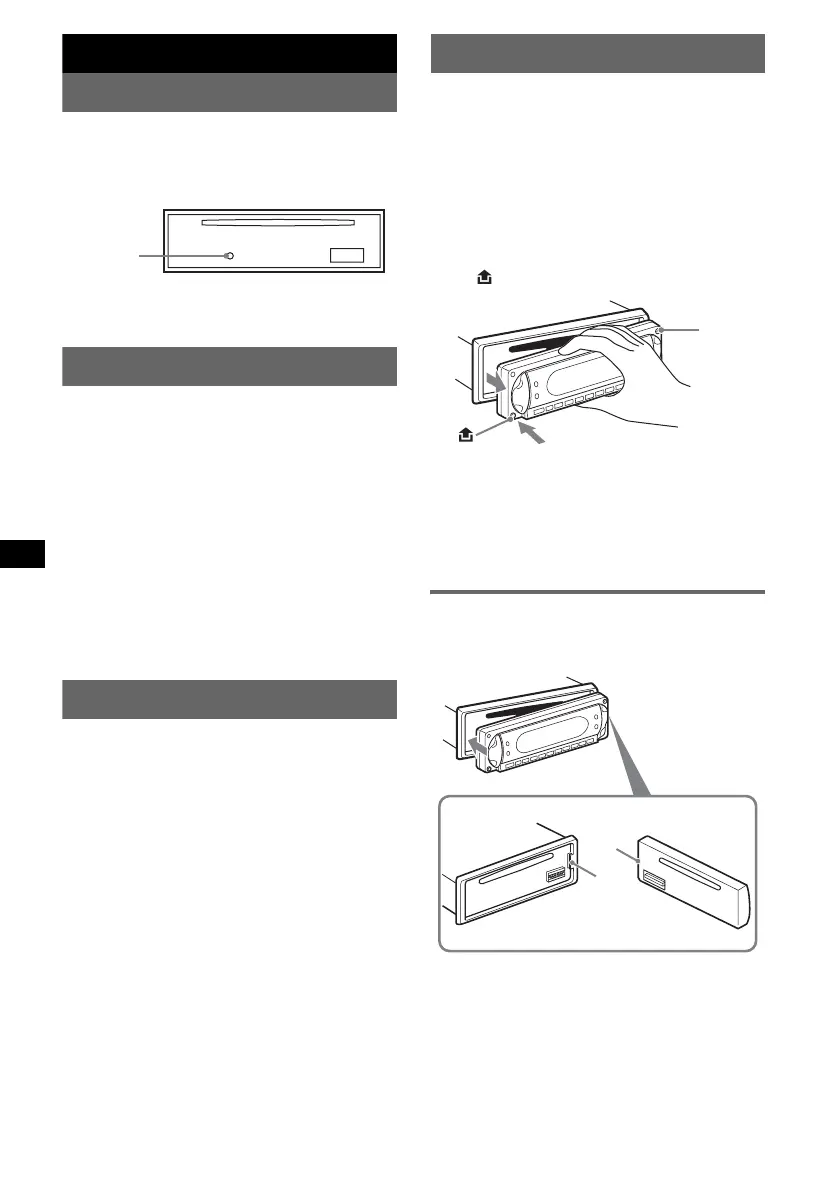 Sony CDX-R5810 - 開始使用之前 復原本機; 設定時鐘; Demo 模式; 拆卸前面板