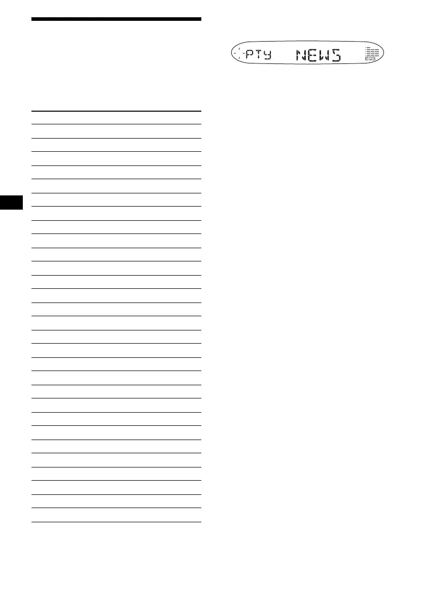 erscheint, wenn der Sender PTY-Daten