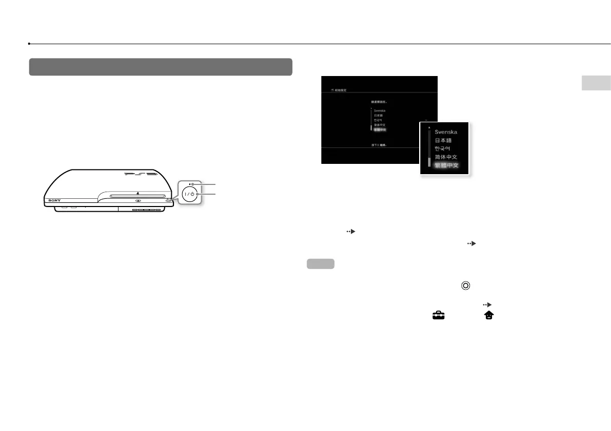 1 啟動電視機,並配合 PS3™ 主機使用之連接端,調整電視機的影像
