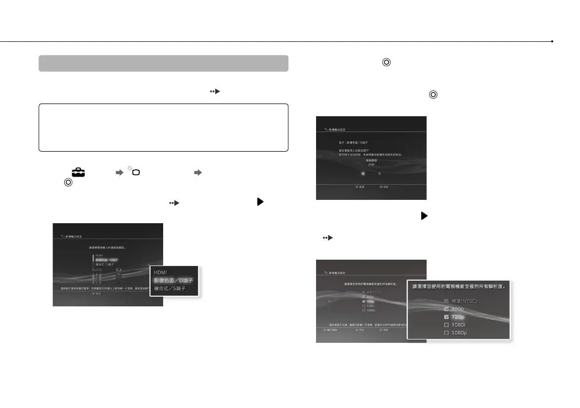 您可能需要配合您連接的連接線和連接端類型,調整 PS3™ 主機的影像