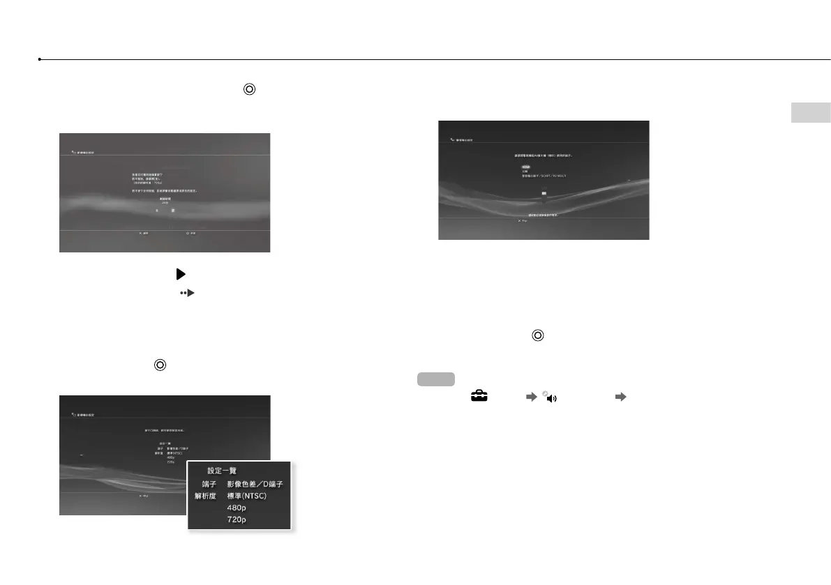 ⾯指示,正確調整設定。請使用HDMI連接線連接 PS3™ 主機與支援