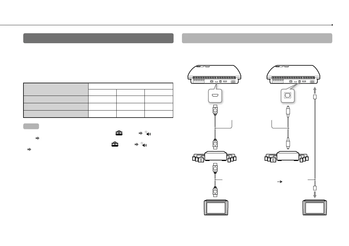 您可使用 HDMI 連接線或光纖數碼線連接⾳響裝置與 PS3 主機。