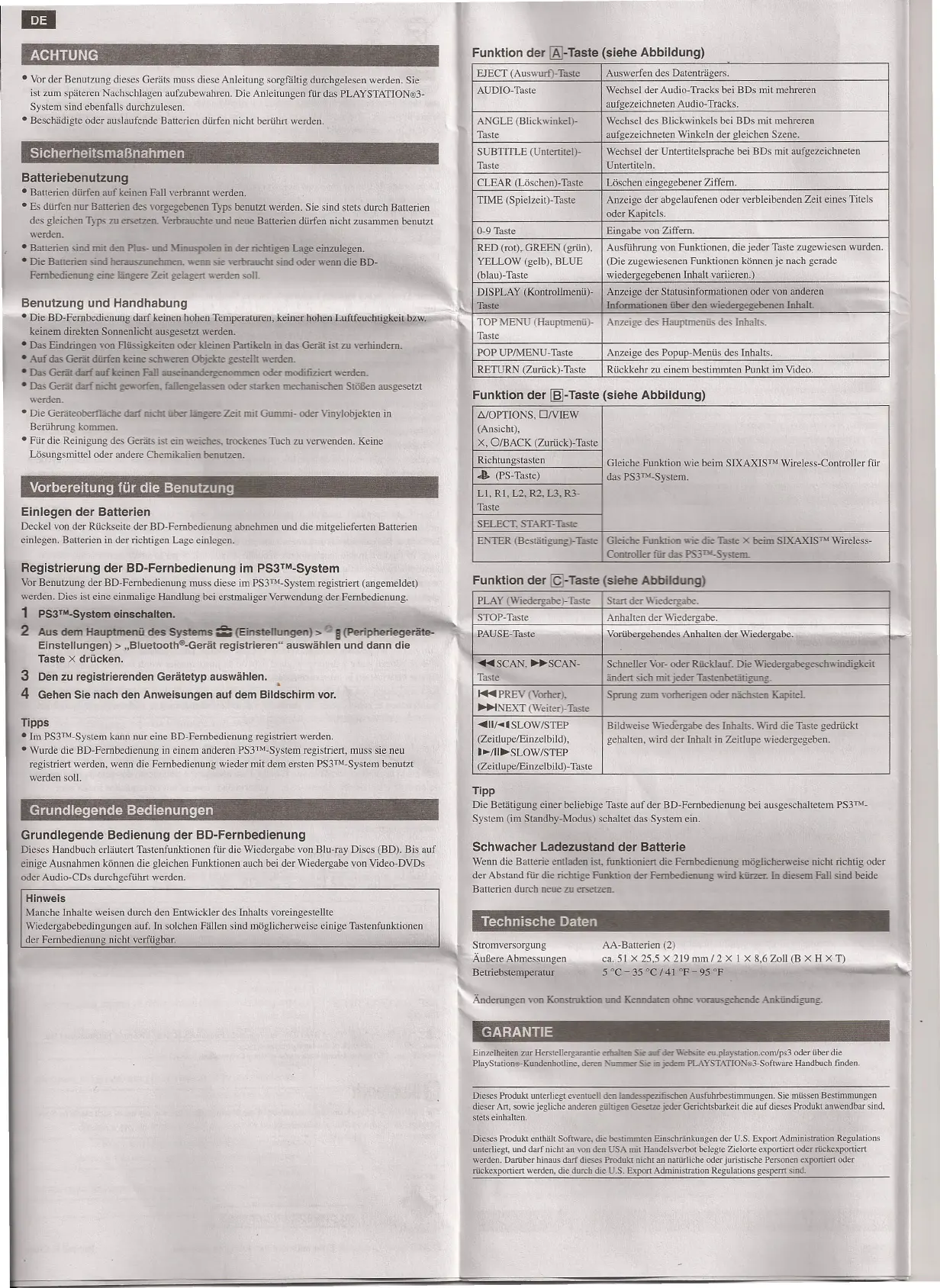 Einzelheiten zur Herstellergaranue erbalu::o Sie -der website eu.playstation.comlps3 oder über die