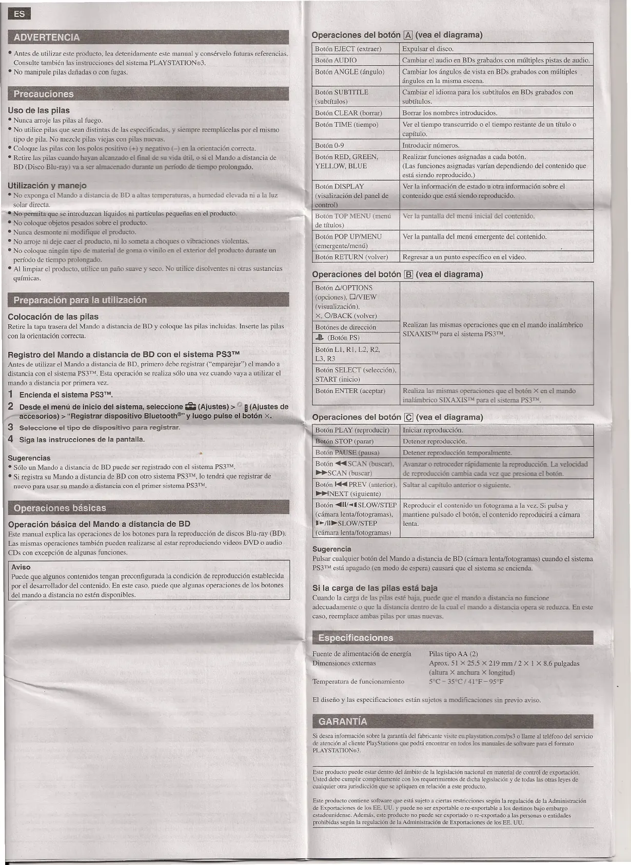 • Si registra su Mando a distancia de BD con otro sistema PS3"" 10 tendra que registrar de