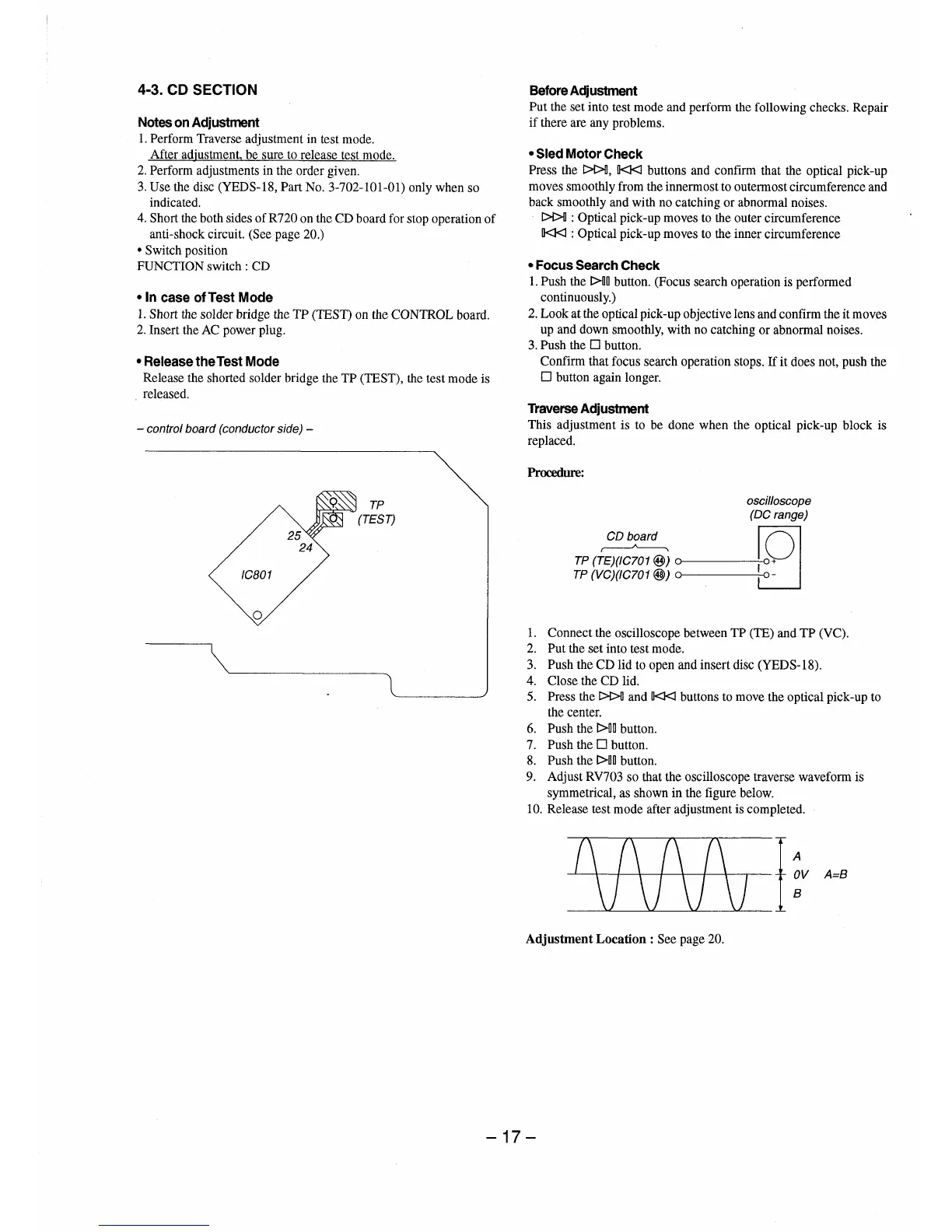 Sony CFD-101 - CD Section Adjustments and Checks