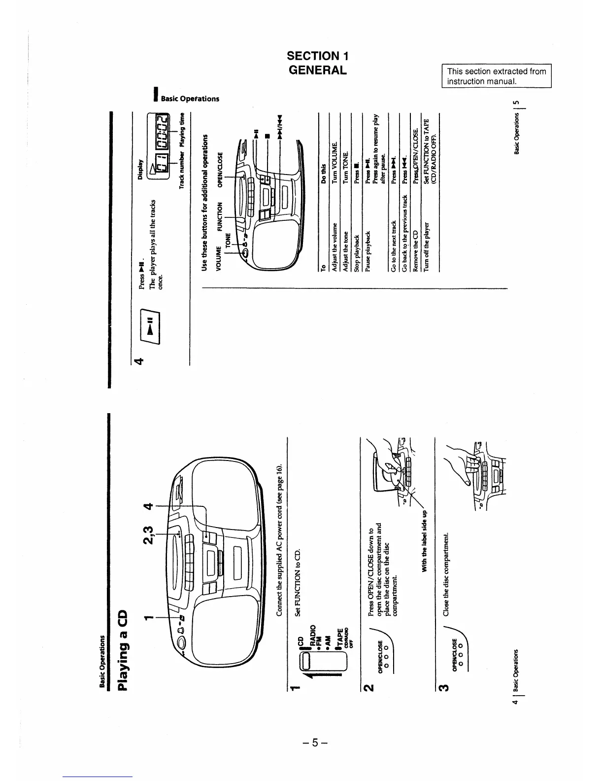 Sony CFD-101 - Section 1: General; Basic Operations: Playing a CD