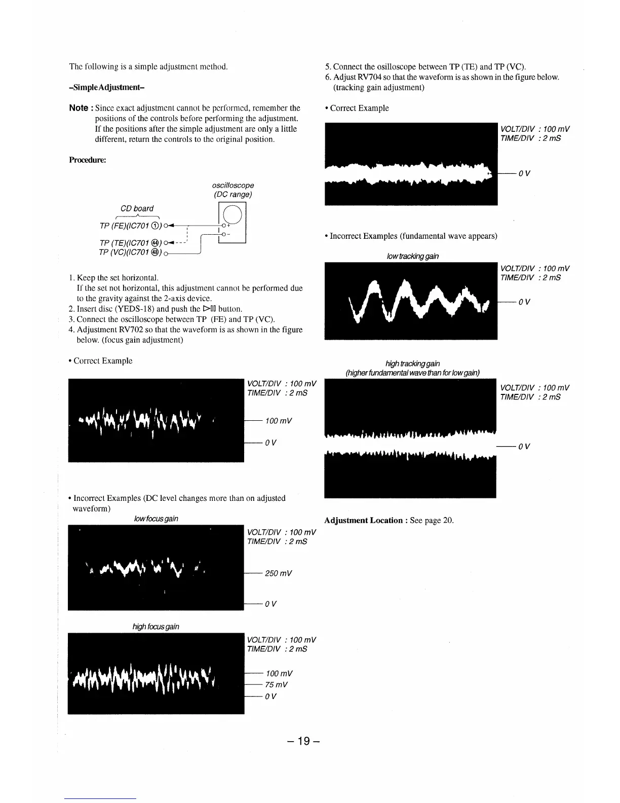 Sony CFD-151 - Simple Adjustment Method; Focus and Tracking Gain Adjustment
