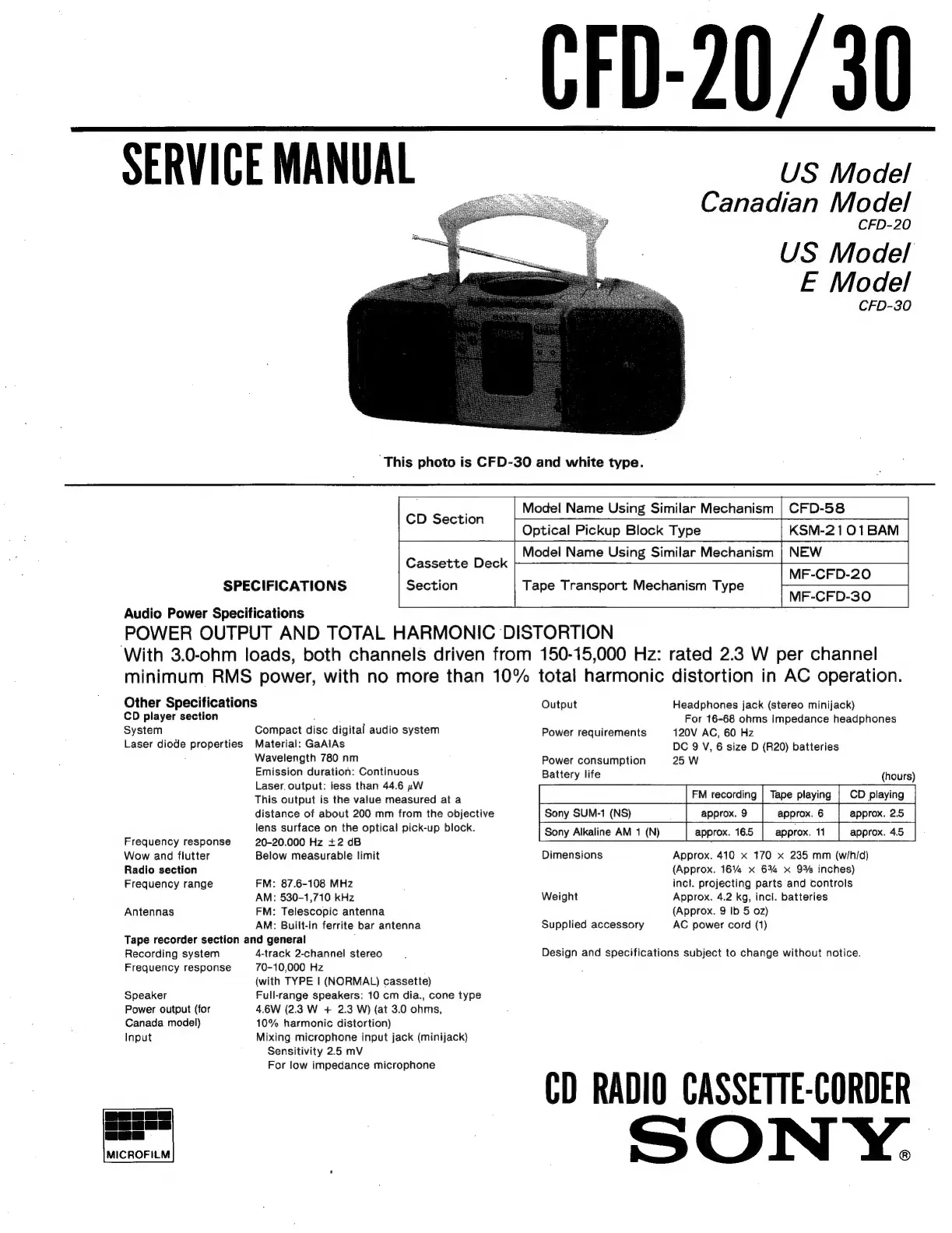 Sony CFD-21 - Specifications