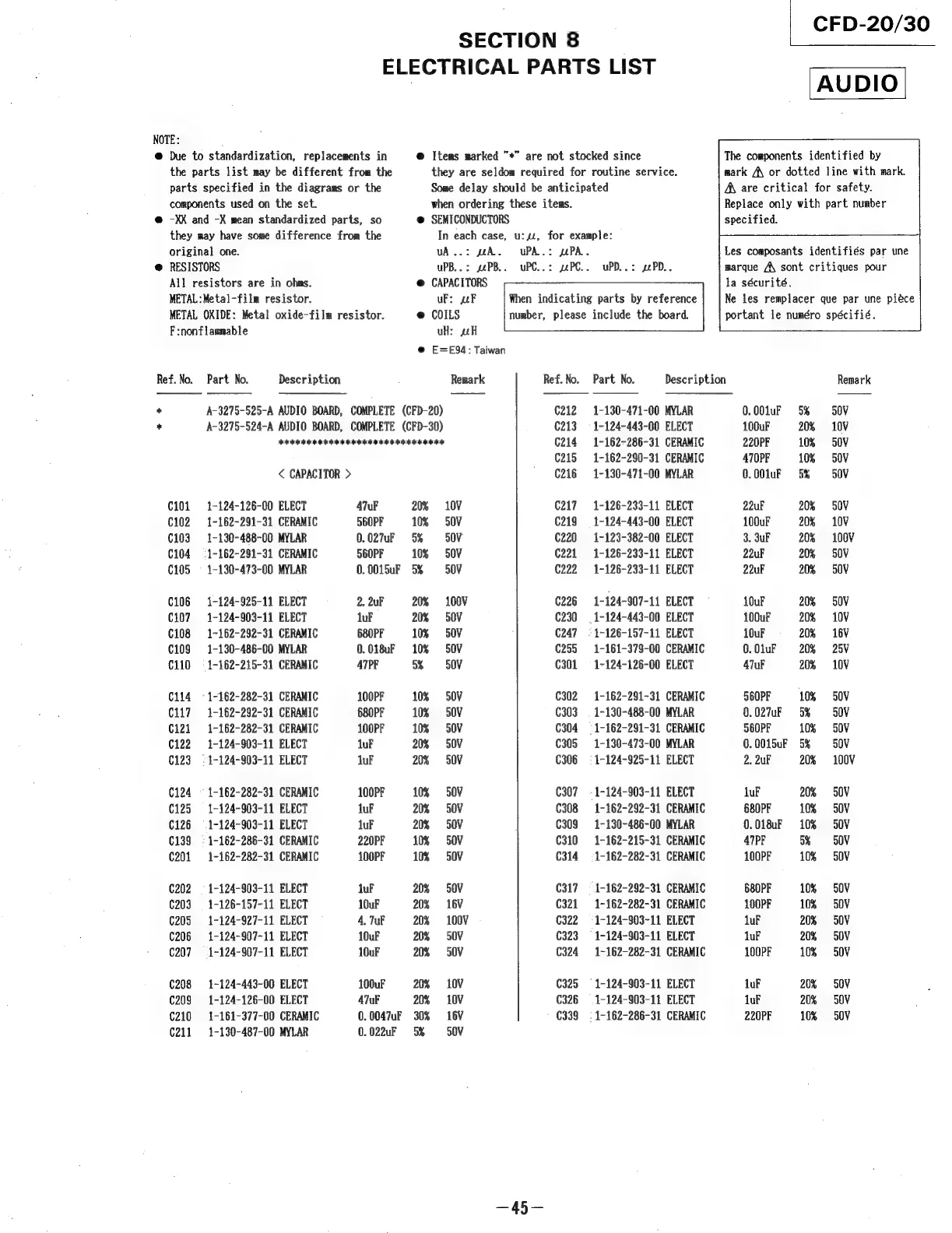 Sony CFD-30 - Section 8 Electrical Parts List